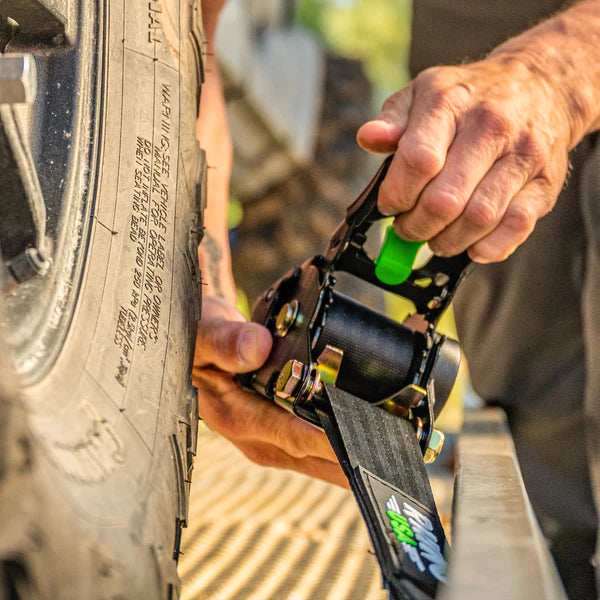 The 2” x 10’ straps have a working load limit of 1,011lbs and a break strength of 3,033 lbs.