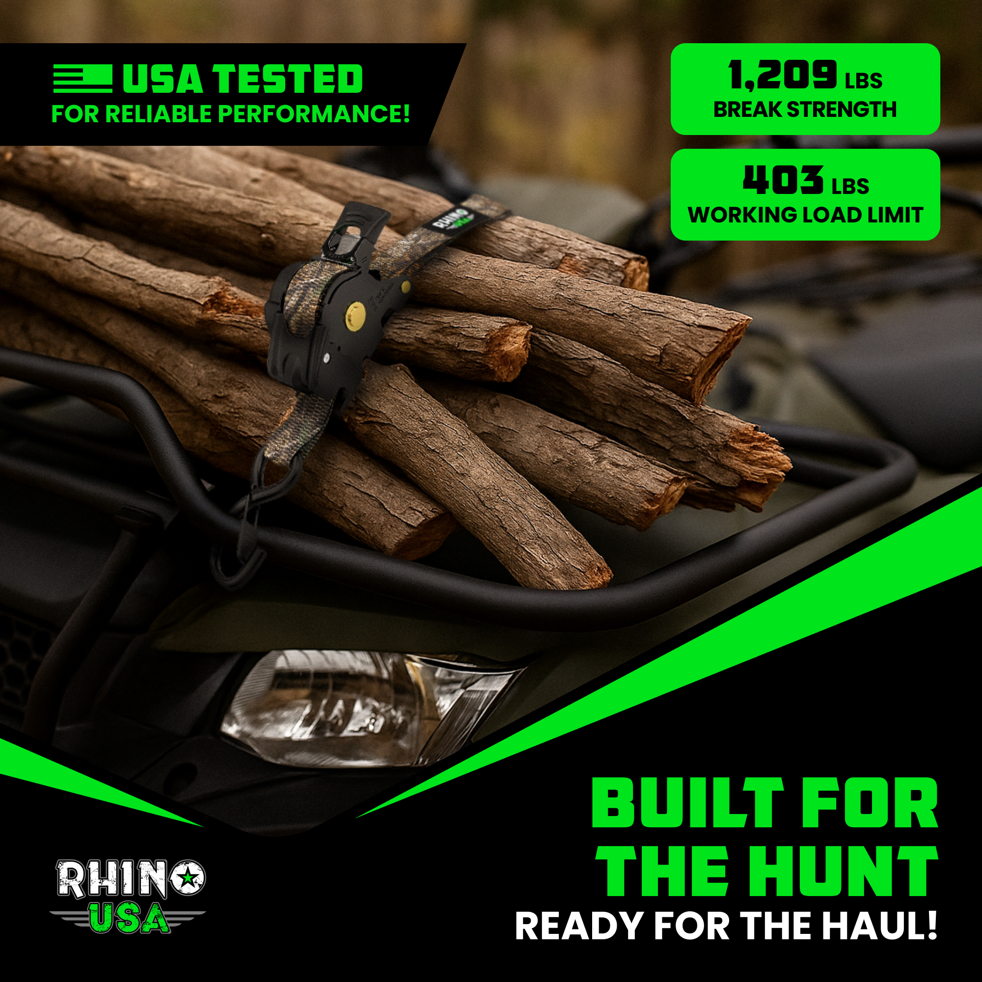 The Rhino USA Retractable Ratchet Straps features one of the highest break strengths in the industry. The exact break strength depends on the thickness: