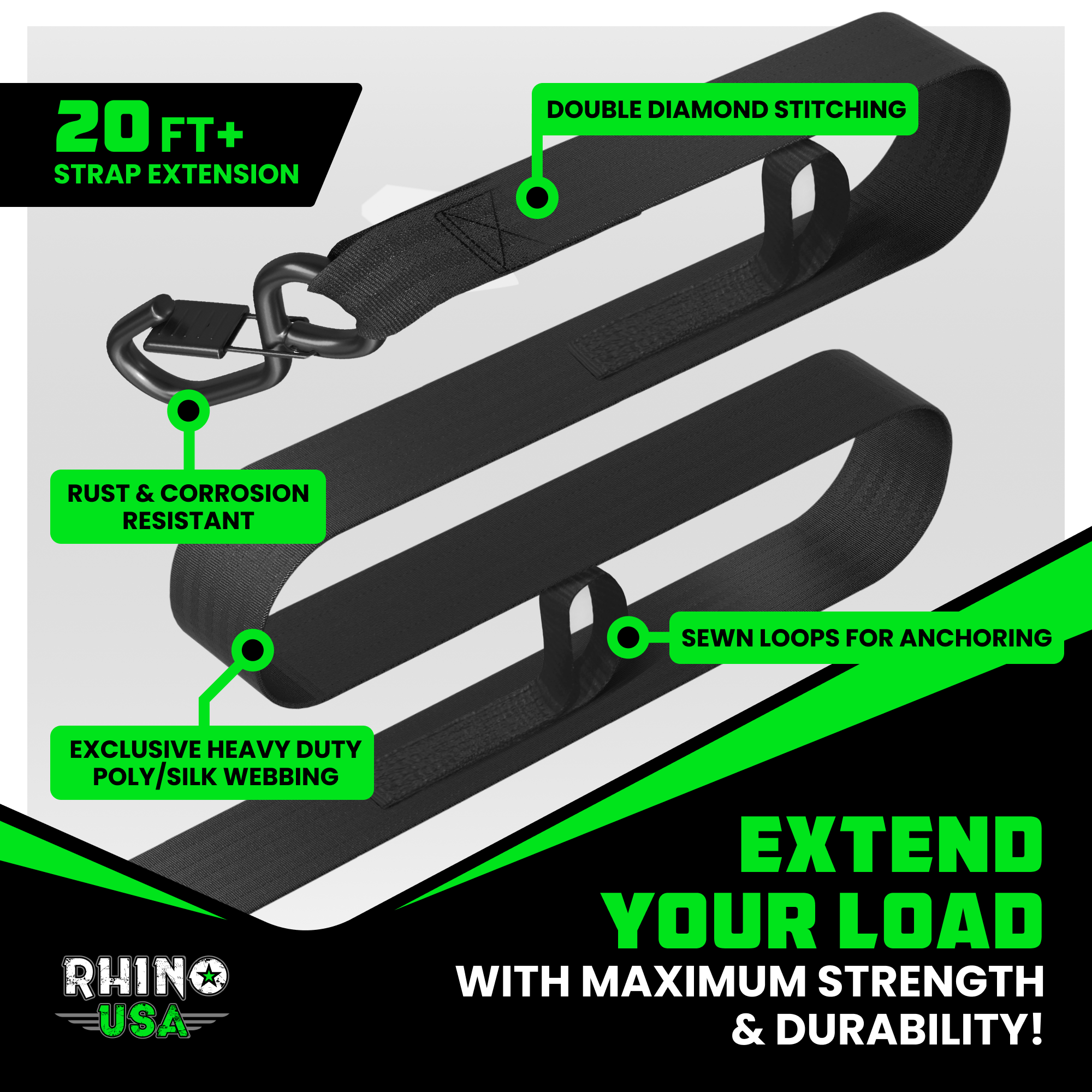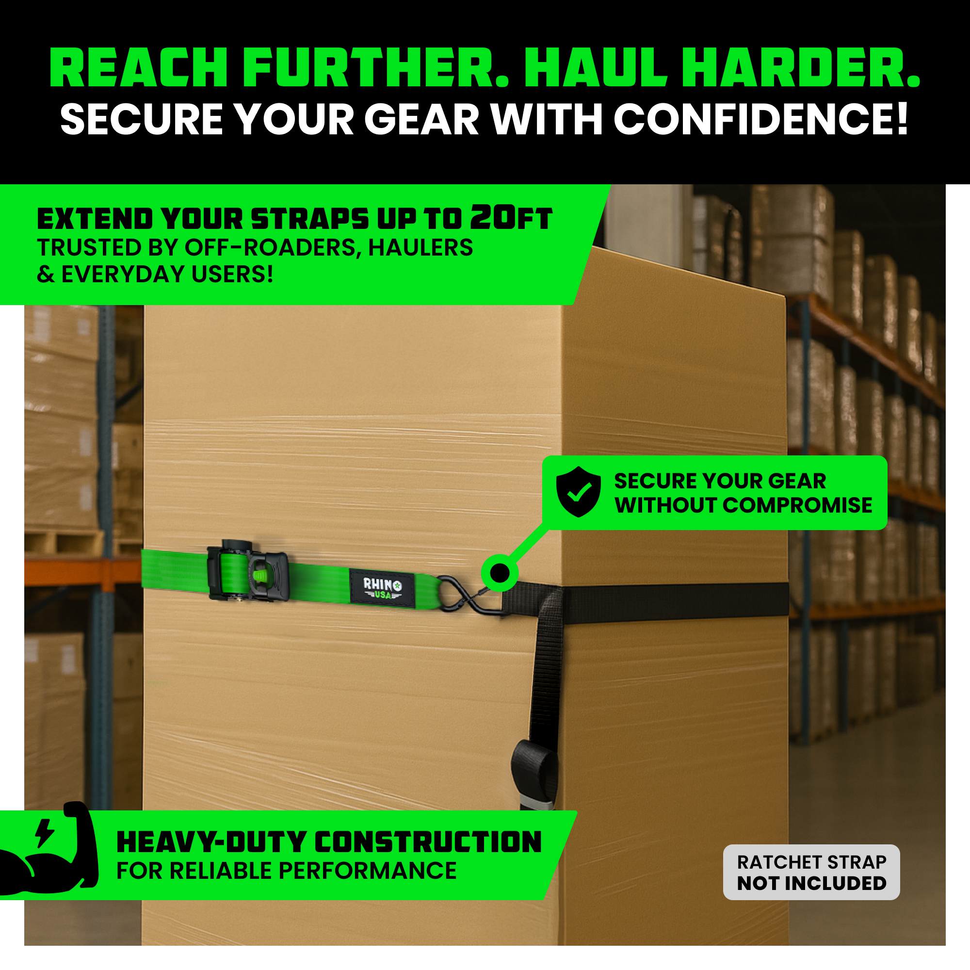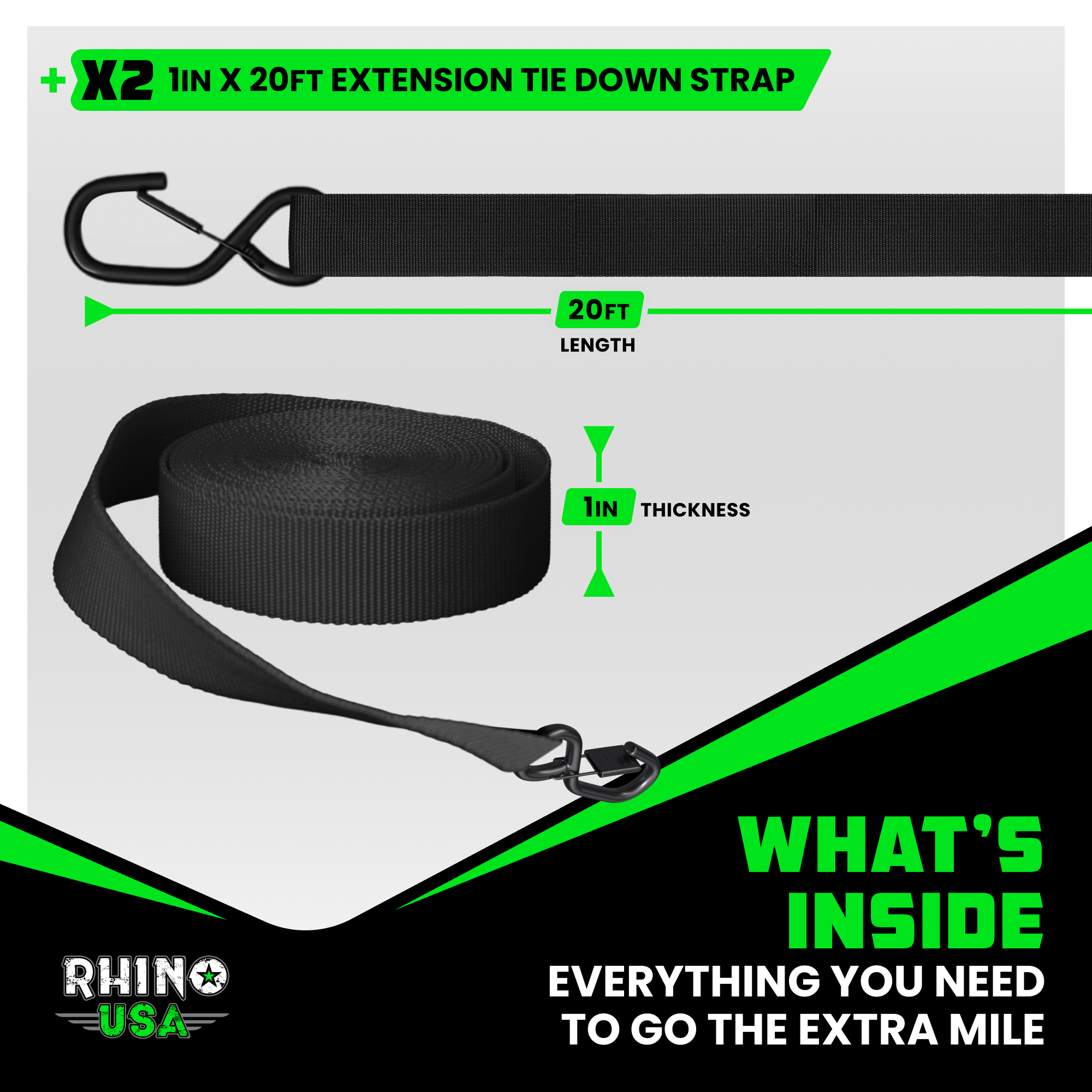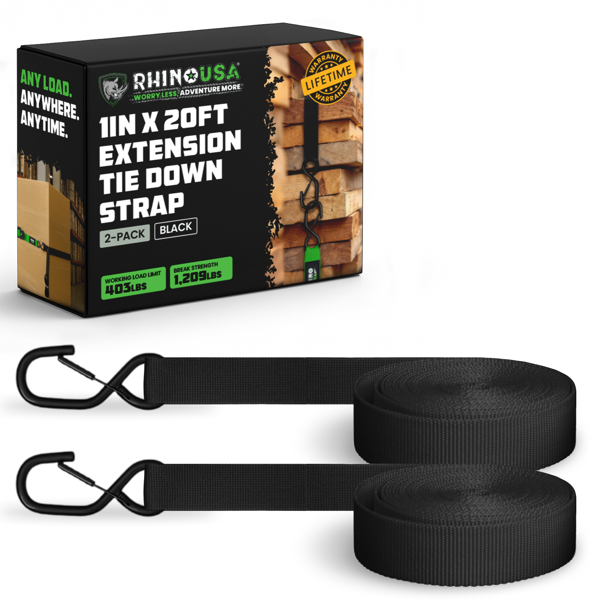 • HEAVY-DUTY STRENGTH - The 2" strap features a 3,033lb break strength and 1,011lb working load limit, while the 1" strap has a 1,209lb break strength and 403lb working load limit.