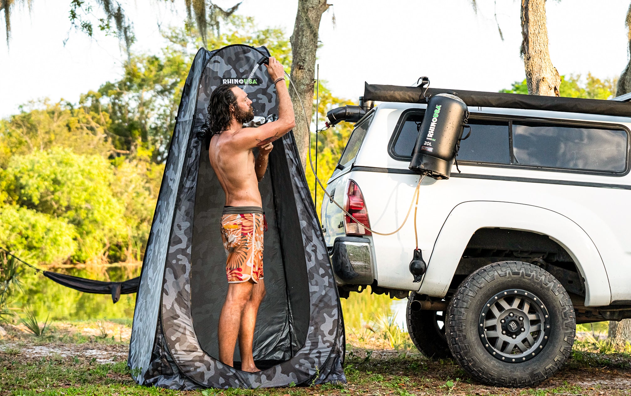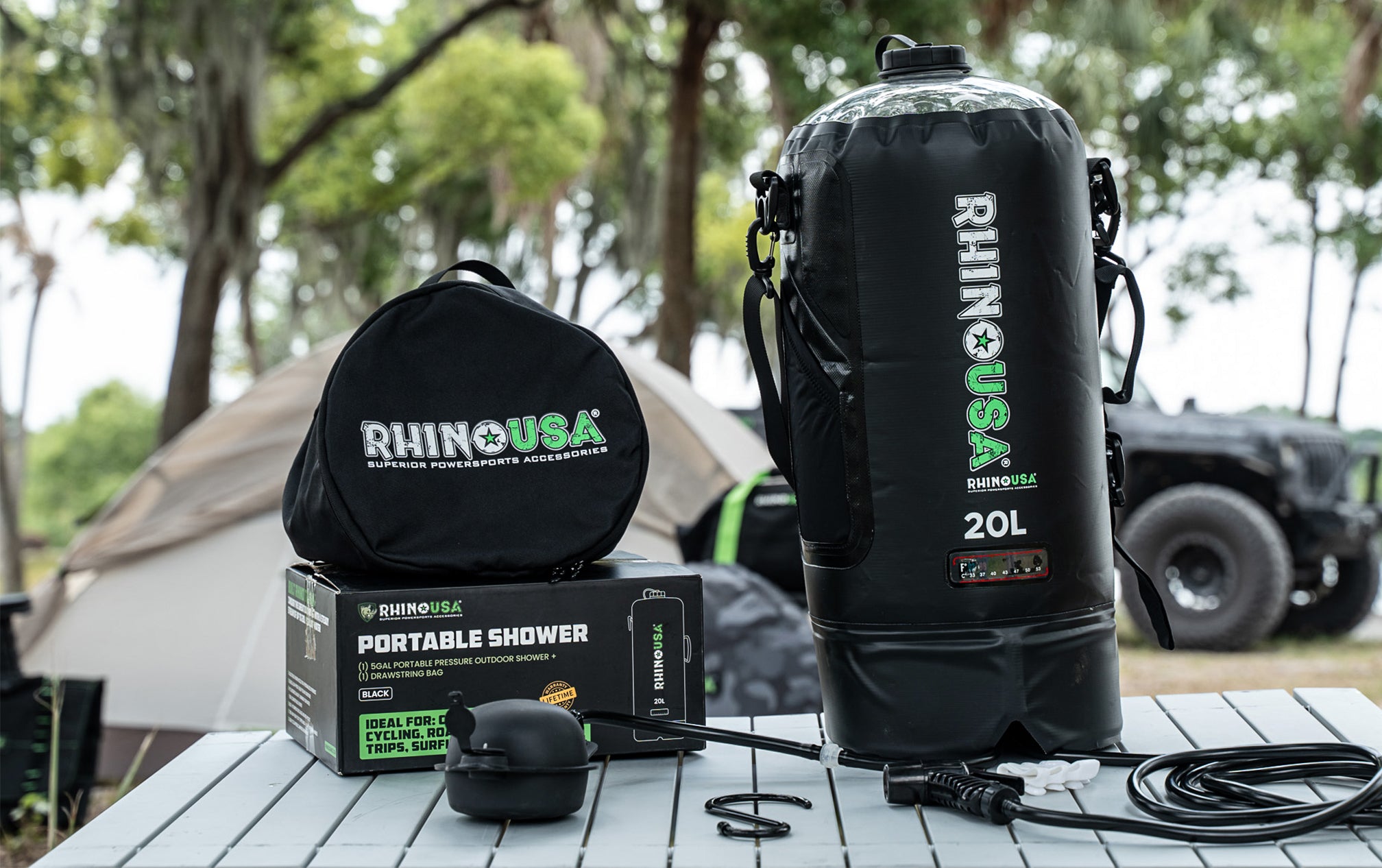 Portability is key with the Rhino USA Camp Shower. It comes with a compact storage bag that makes it easy to store and transport. Whether you're packing it in a backpack, overland vehicle, SxS, or adventure bike, this camp shower is designed to fit seamlessly into your gear, ensuring you can take it wherever your adventures lead.
