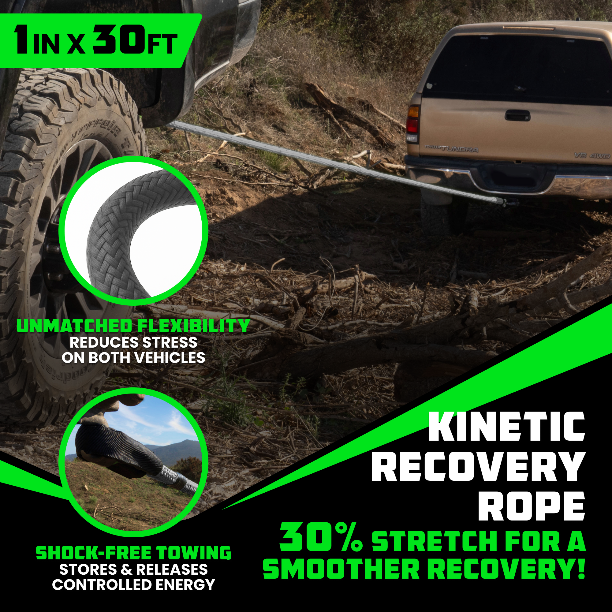 When the trail gets tough, you need a tougher rope. The Rhino USA 1" Kinetic Rope delivers massive pulling power with dynamic stretch that smoothly transfers energy for safer, more effective recoveries. Pair it with your Soft Shackles, and you’ve got the ultimate setup for pulling full-size trucks out of deep mud, snow, or sand.