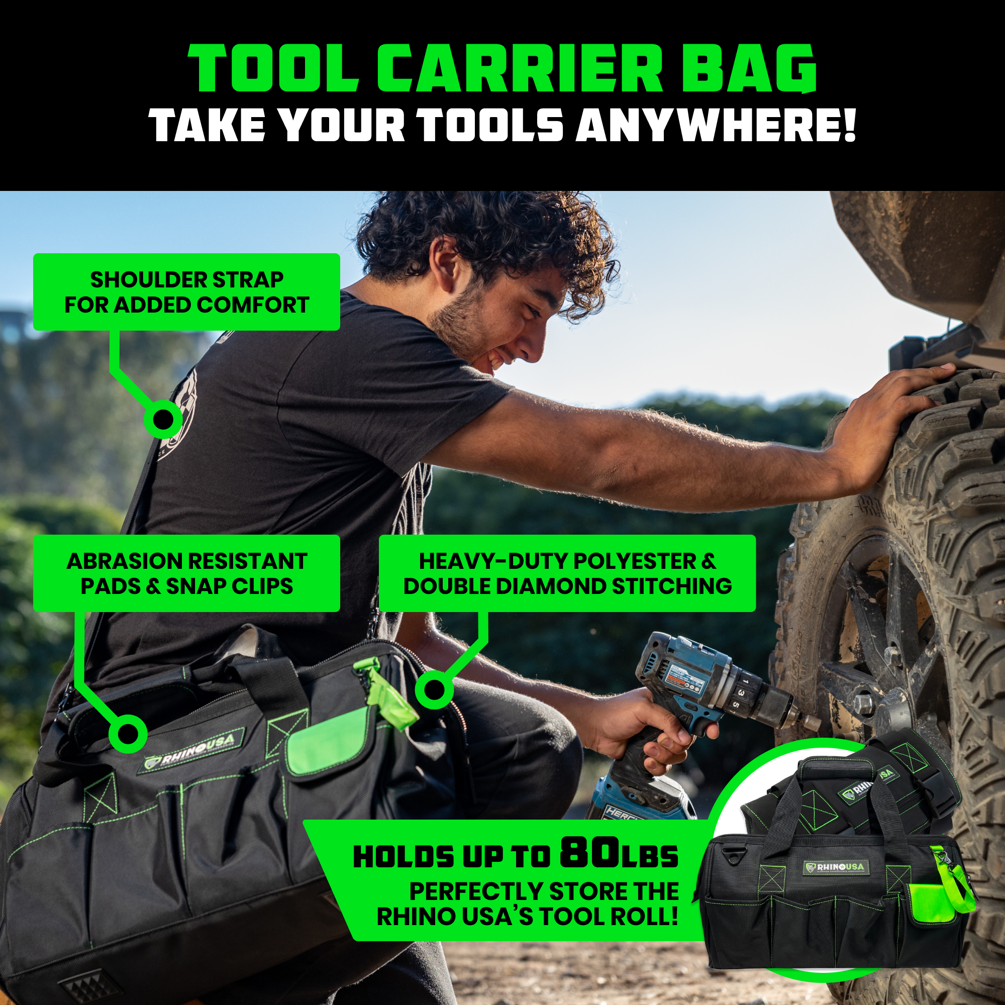Built tough for job sites, road trips, and everything in between, the Rhino USA Tool Bag keeps your tools and gear neatly organized. Spacious enough for impacts, breaker bars, and recovery essentials, it’s a workhorse companion that keeps your truck bed tidy and your equipment ready when duty calls.