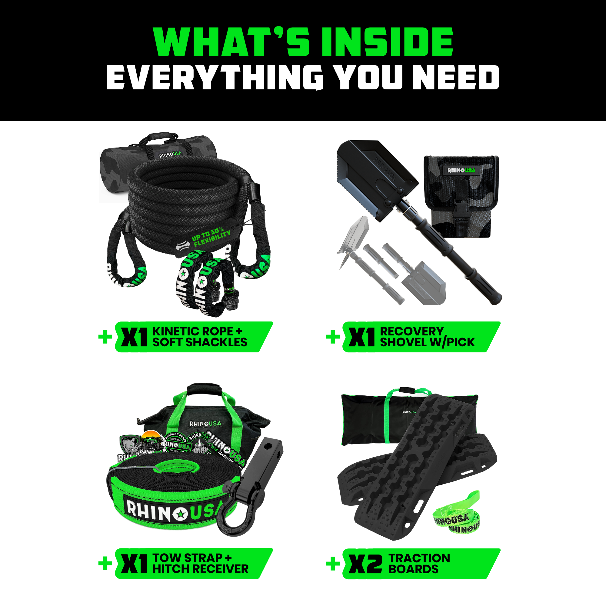 With this kit, you can turn your tow package into a professional-grade recovery point. The Rhino USA Shackle Hitch Receiver provides a safe, secure connection for your Kinetic Rope or Tow Strap, giving you peace of mind when the pull gets heavy. Strong, simple, and essential — no serious off-road setup is complete without one.