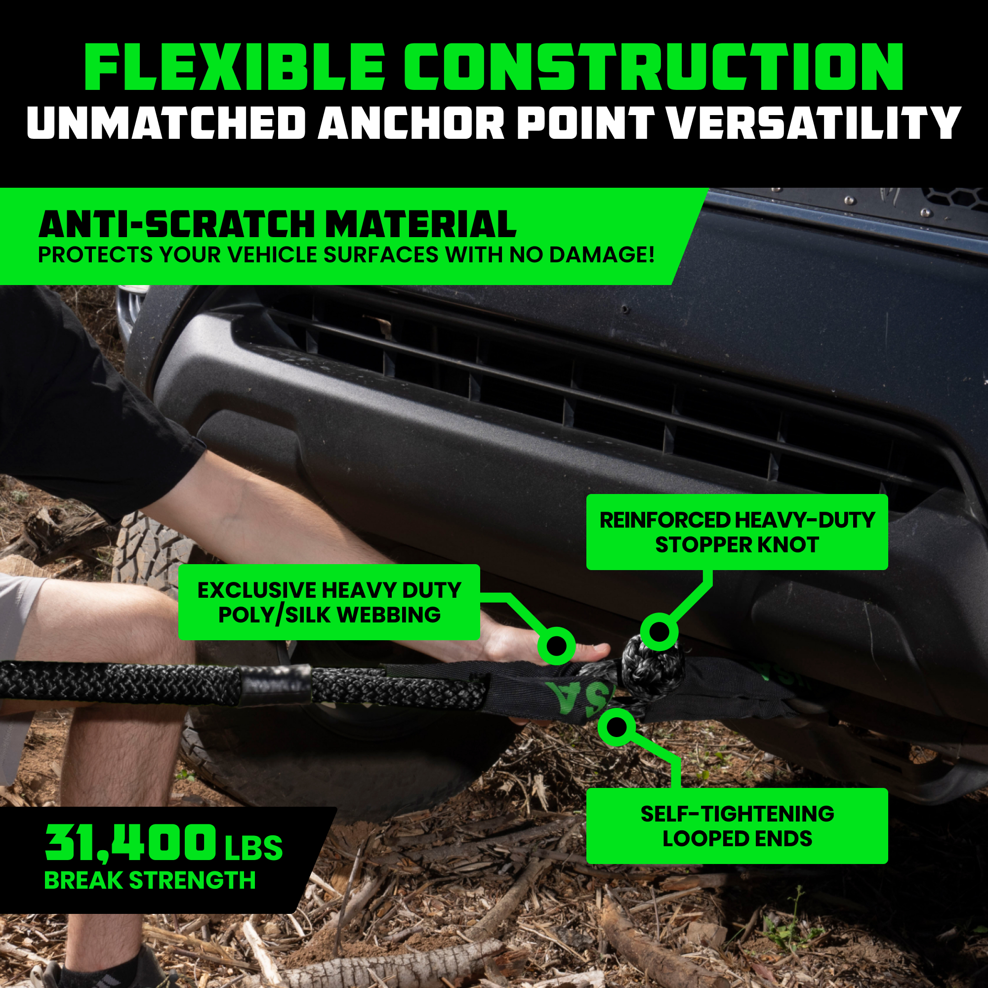 When traction disappears, this rope brings you back. The Rhino USA 7/8" Kinetic Rope uses controlled stretch to build momentum and deliver smooth, powerful recoveries in sand, snow, or mud. Strong, safe, and easy to handle, it’s the go-to solution for pulling your Jeep or SUV free without the jolt of a traditional tow strap. 1/2" Soft Shackles included – connect effortlessly to your Kinetic Rope or Tow Points for a quick, secure recovery every time.