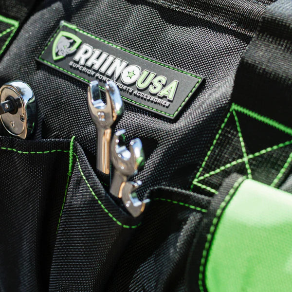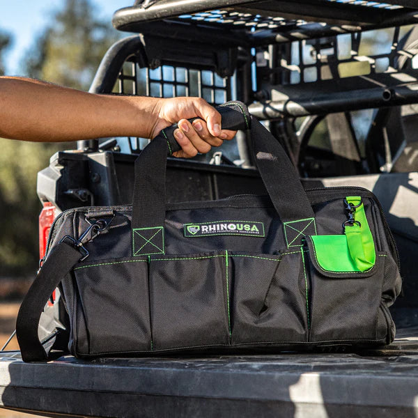 With its large main compartment and featuring 8 interior pockets, and the exterior boasting 7 reinforced pockets, this tool bag offers ample storage space for a wide range of tools and equipment. The well-organized layout allows easy access to your essentials, eliminating the hassle of rummaging through cluttered bags. The Rhino USA heavy duty tool bag features a 20-inch wide mouth opening with 4-inch and 5-inch pockets, and it’s even large enough to fit a UTV Tool Roll Bag.