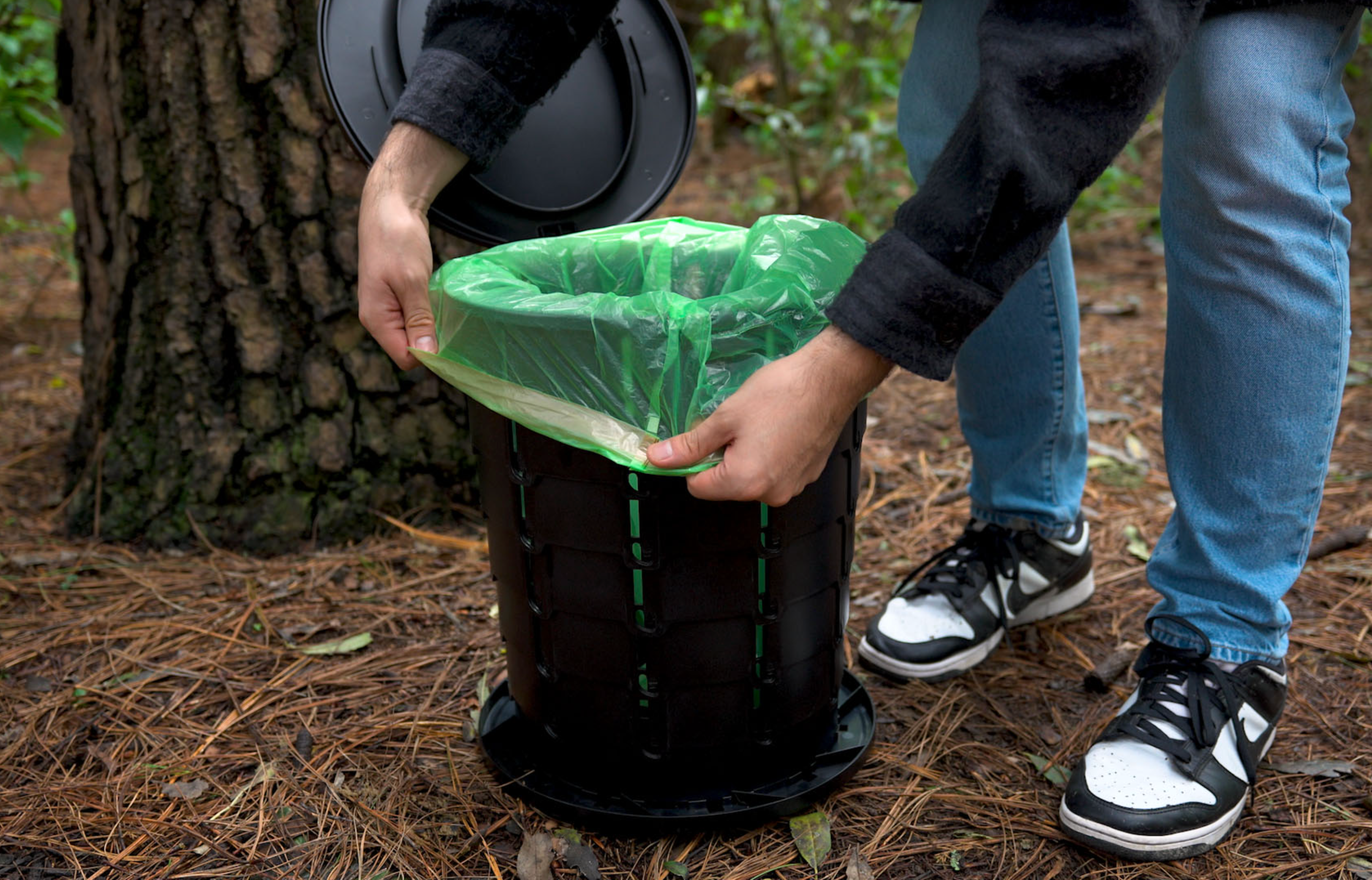 Weighing only 4 lbs, this lightweight design collapses flat for effortless transport and storage in a compact camo bag. Included mint-scented bags make waste disposal simple and odor-free! Whether camping, hiking, fishing, or road-tripping, this portable solution keeps your adventures fresh and stress-free.