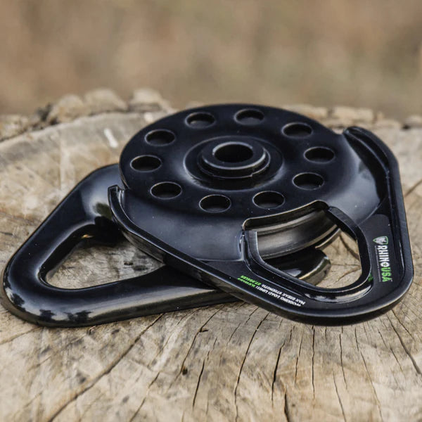 The Rhino USA Recovery Snatch Block is built to handle the toughest recovery operations. Made with high-strength cutting edge aerospace polymer pulley and 6mm powder coated drop forged steel. These heavy duty materials and precision engineering, ensures durability and reliability in demanding situations. It is most effective when paired with a tree saver strap and heavy duty Rhino USA d-ring shackle.