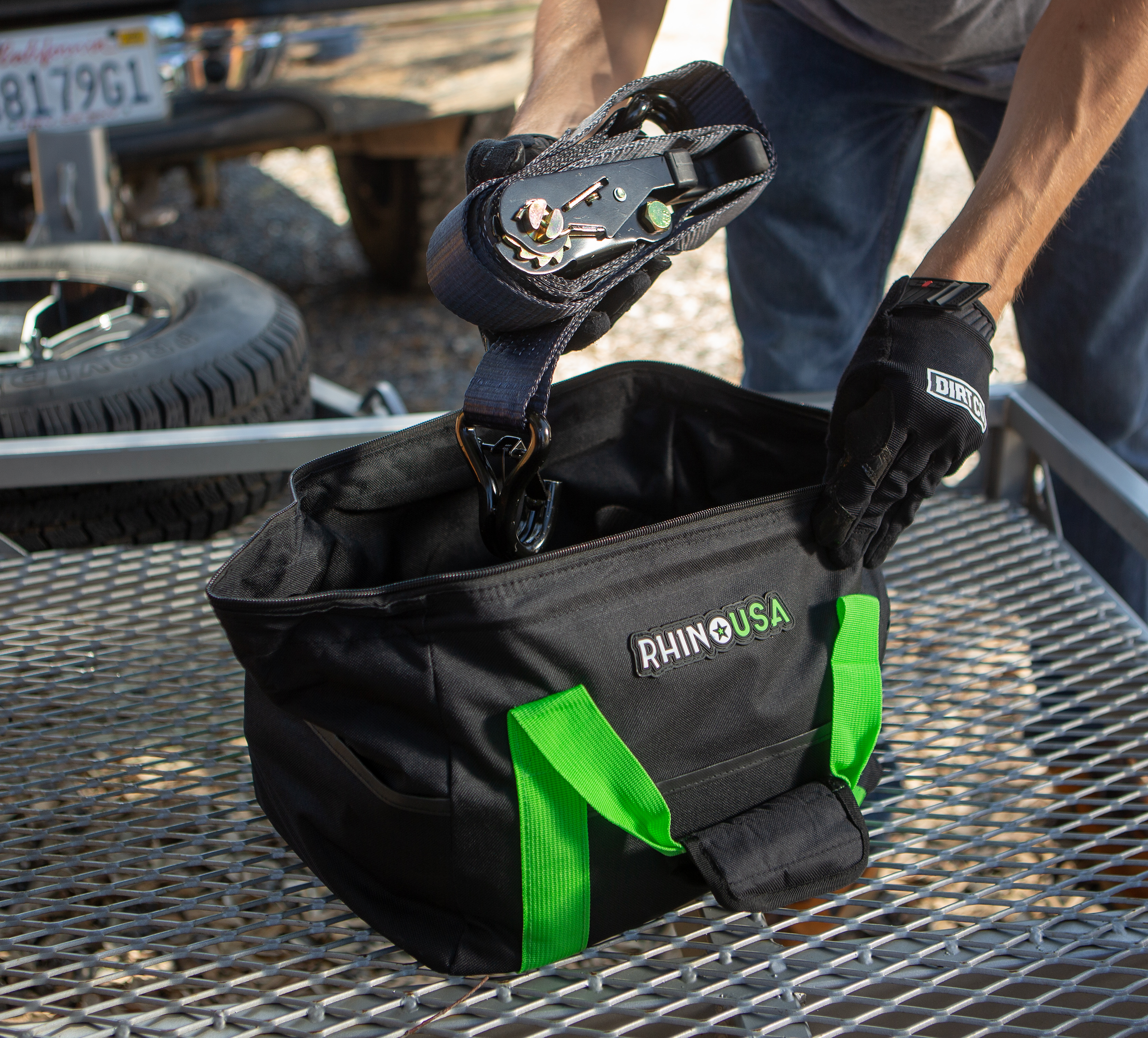 Our Vehicle Ratchet Tie-Down kit comes with a heavy-duty canvas carrybag for easy storage and to keep your straps organized!