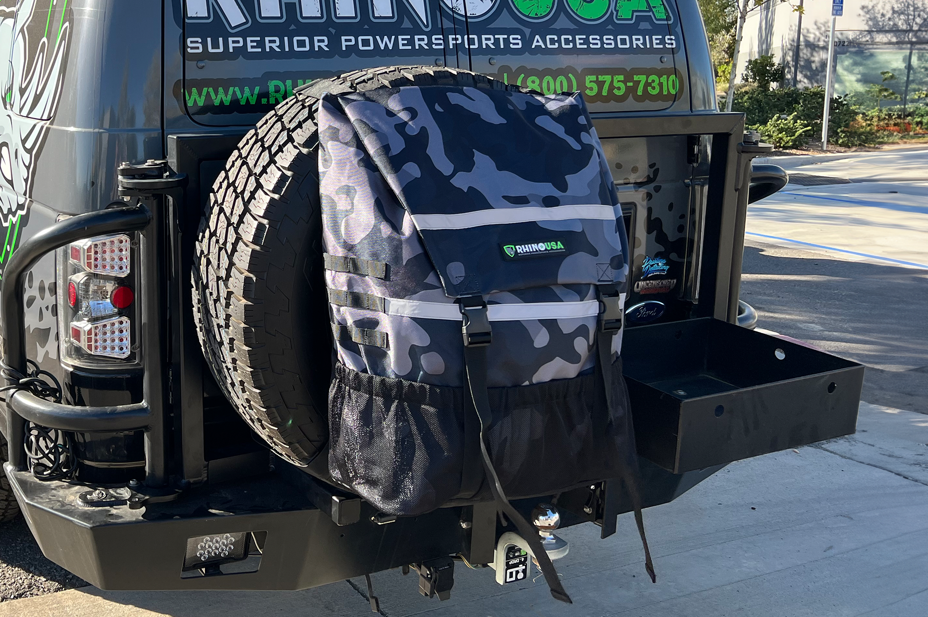 The spare tire trash bag features a user-friendly design that allows for quick and hassle-free installation. Simply wrap it around your spare tire, adjust the straps, and secure it in place. No tools or complicated setup required. Securely attaches to spare tires up to 40" size. A full 25 gallon capacity stores more than just trash! The perfect addition for your over-landing and camping.