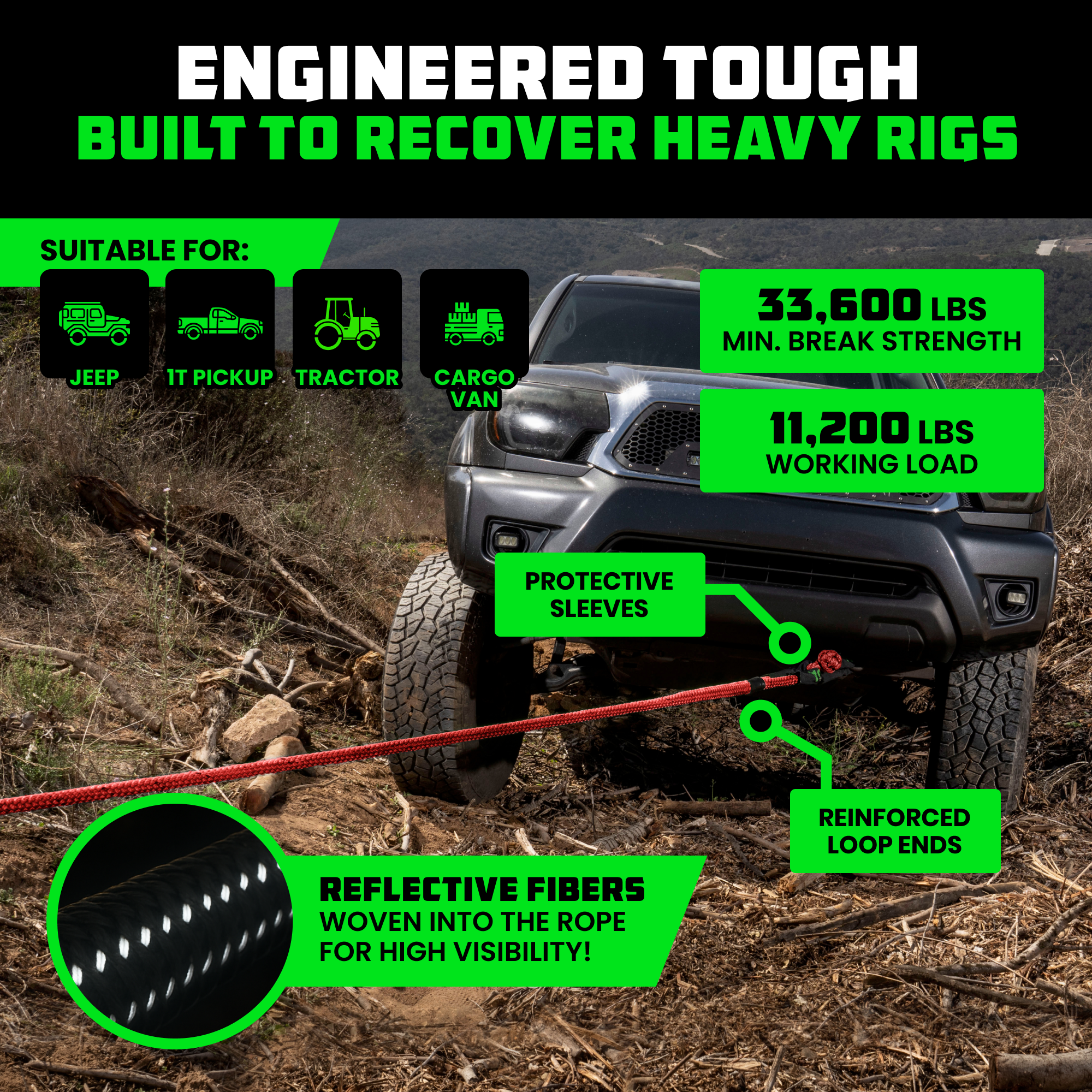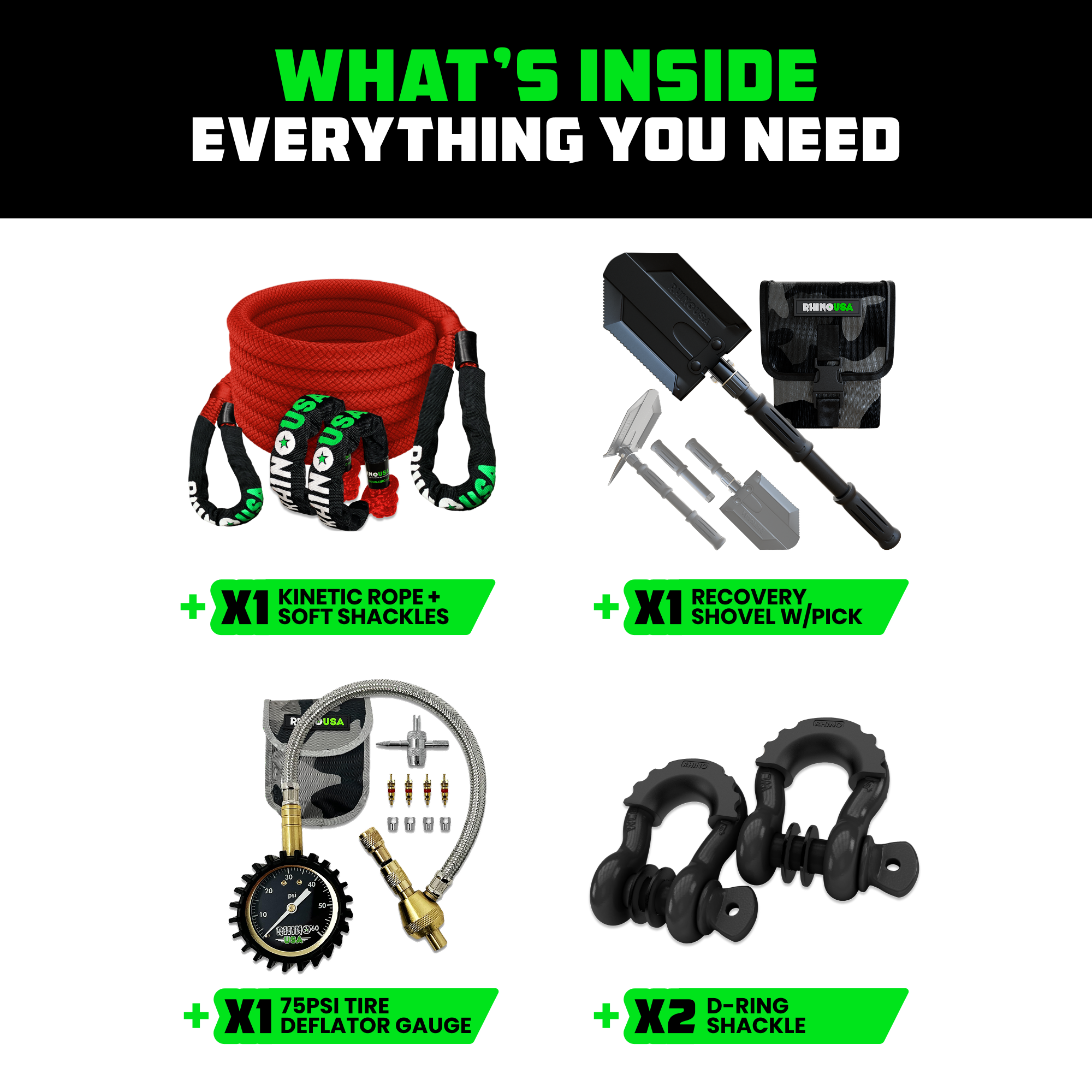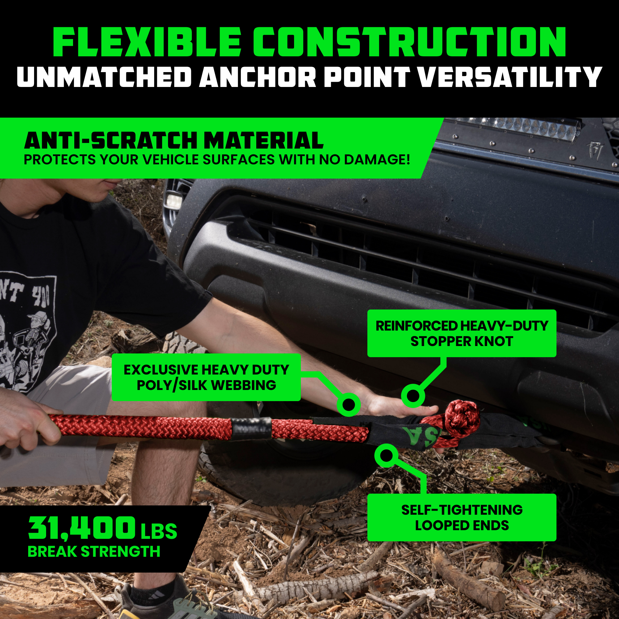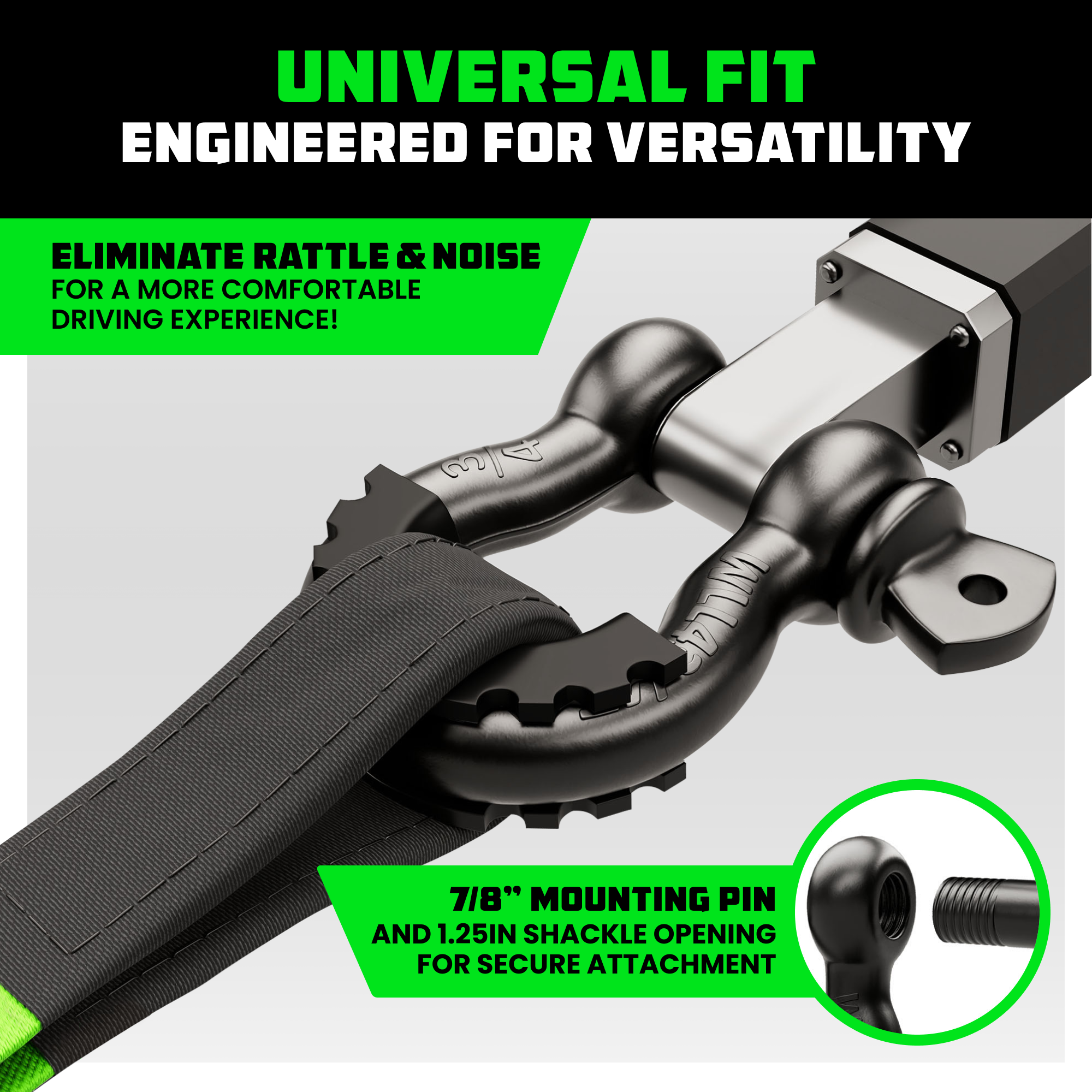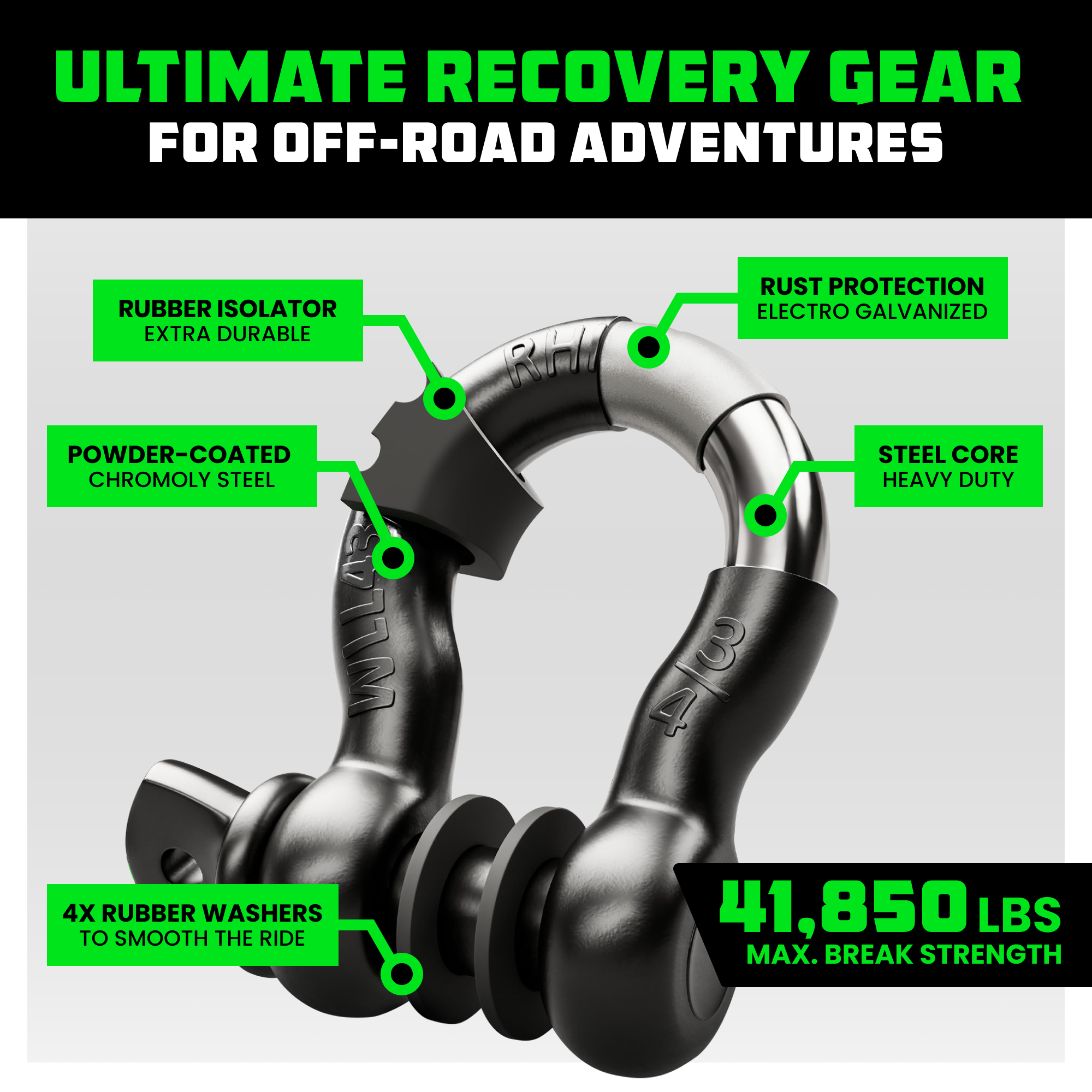 When traction disappears, this rope brings you back. The Rhino USA 7/8" Kinetic Rope uses controlled stretch to build momentum and deliver smooth, powerful recoveries in sand, snow, or mud. Strong, safe, and easy to handle, it’s the go-to solution for pulling your Jeep or SUV free without the jolt of a traditional tow strap. 1/2" Soft Shackles included – connect effortlessly to your Kinetic Rope or Tow Points for a quick, secure recovery every time.