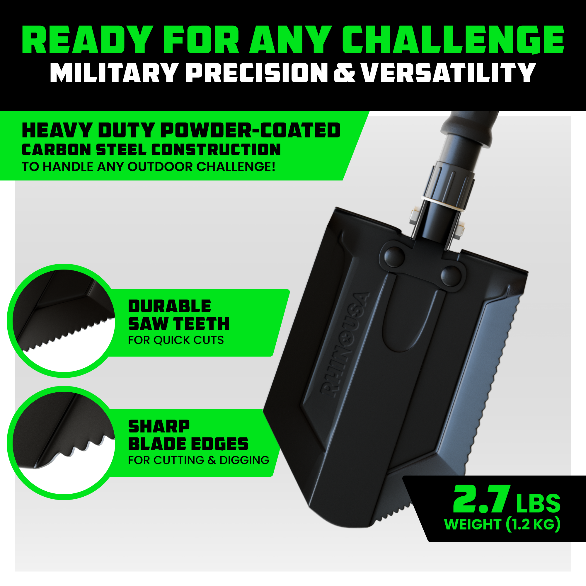 Compact, tough, and trail-ready — the Rhino USA Military E-Tool is built for real off-road utility. Dig out a buried rig, clear trail debris, or carve out your campsite with ease. It’s the ultimate multi-purpose tool for Jeepers and overlanders who like to get their hands dirty and stay self-reliant.
